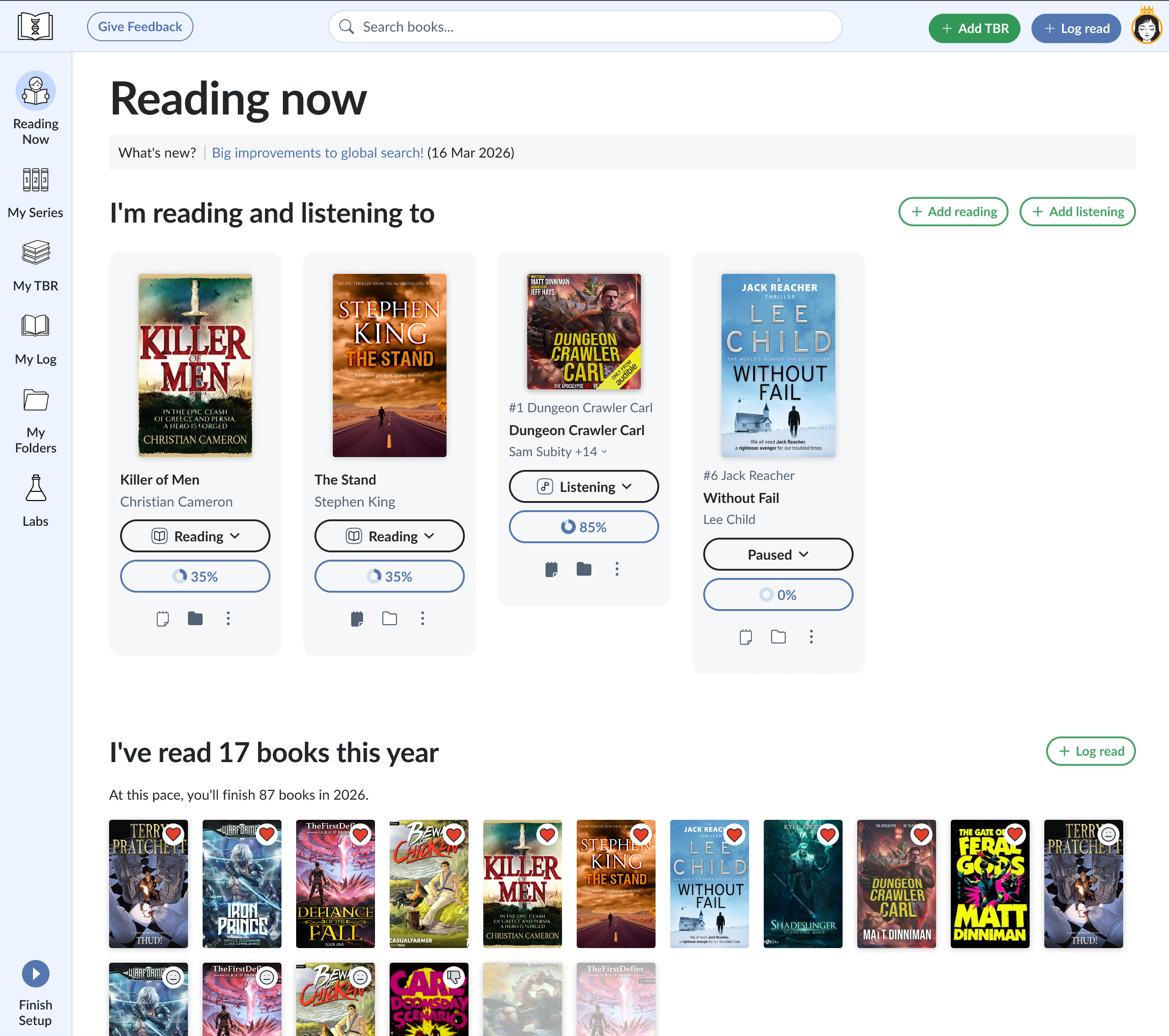 The new Reading Now page.