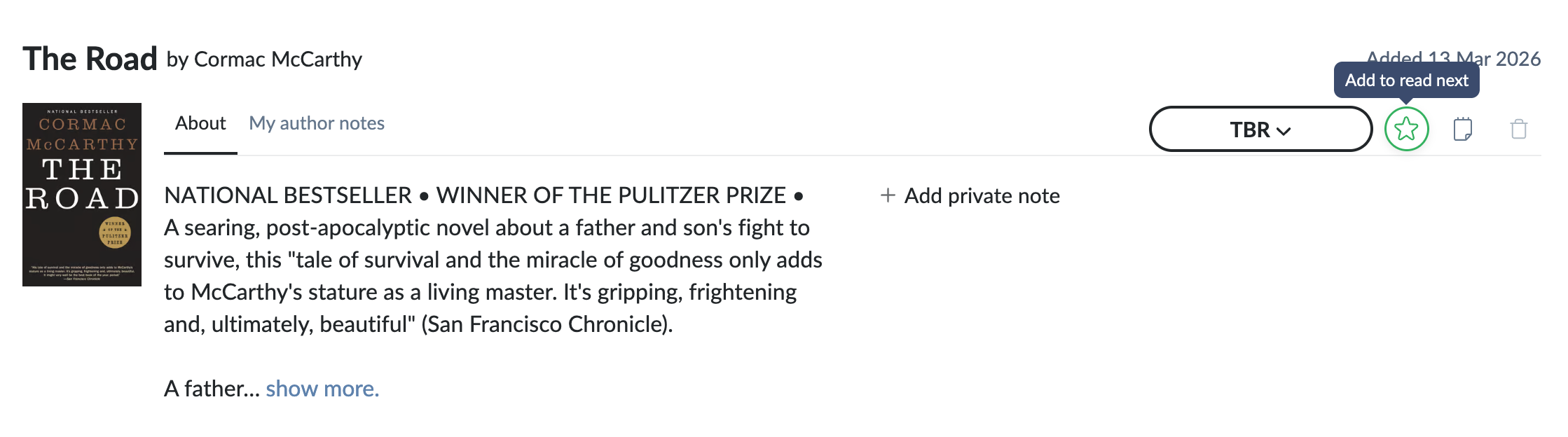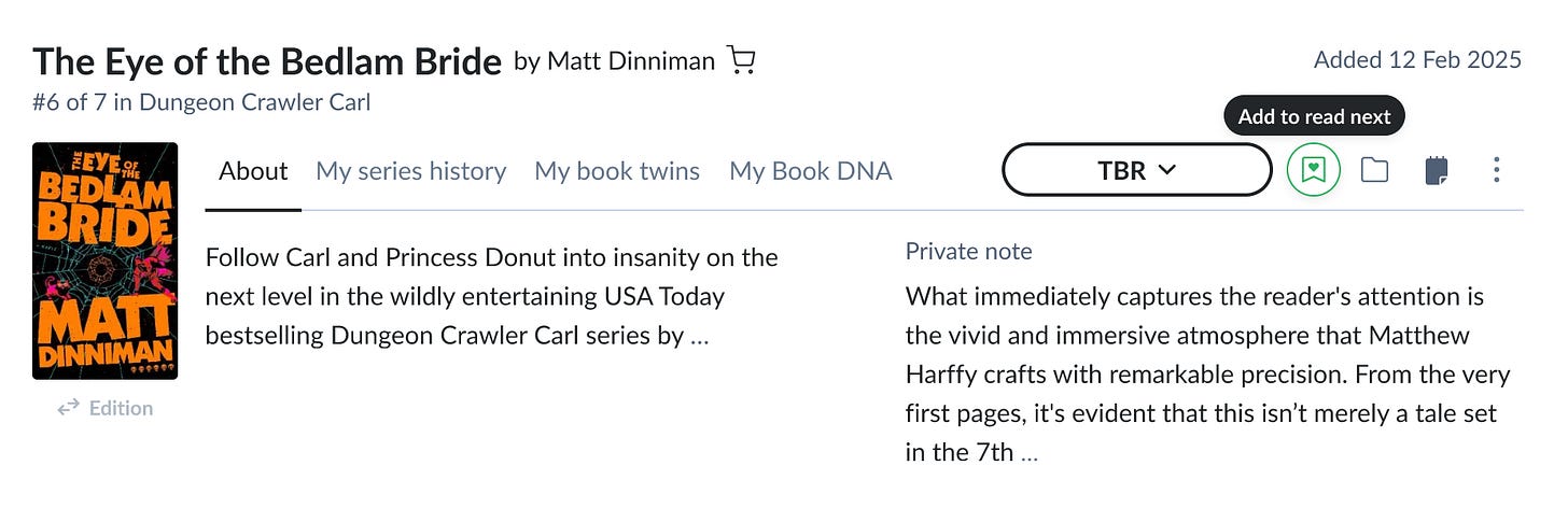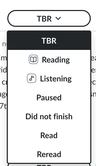 Add missing buttons to add books you are reading or listening to under the “currently reading” section (currently, the only way to do this is to add the book to TBR and then mark it as reading).